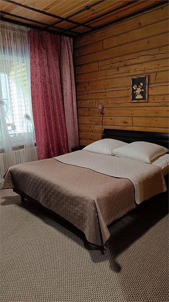 Уютный номер: одна комната с двуспальной кроватью и 2-мя прикроватными тумбами, ЖК-телевизором, комодом, шкафом-купе; в каждом номере: холодильник, фен, чайник, чайные пары; туалетная комната с раковиной, зеркалом, WC, душевой кабиной, набором туалетных принадлежностей, тапочки.