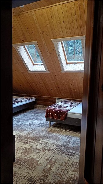 двуспальная кровать, 2х ярусная кровать, телевизор, холодильник, с/у душ, терасса