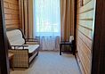 Уютный двухкомнатный номер с двуспальной кроватью и 2-мя прикроватными тумбами, ЖК-телевизором, тумбой под телевизор, шкафом-купе; во второй комнате 2-х ярусная кровать; в номере есть холодильник, фен, чайник, чайные пары; туалетная комната с раковиной, зеркалом, WC, душевой кабиной, набором туалетных принадлежностей, 2 махровых халата, тапочки.