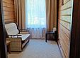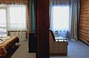 Уютный двухкомнатный номер с двуспальной кроватью и прикроватными тумбами, с софой, комодом, ЖК-телевизором, тумбой под телевизор, журнальным столиком, шкафом-купе; в каждом номере: холодильник, фен, чайник, чайные пары; туалетная комната с раковиной, зеркалом, WC, душевой кабиной, набором туалетных принадлежностей, 2 махровых халата, тапочки.