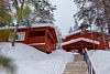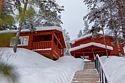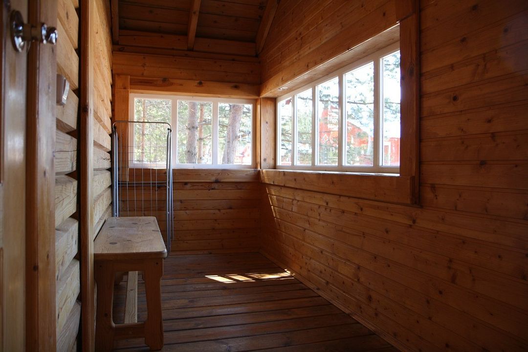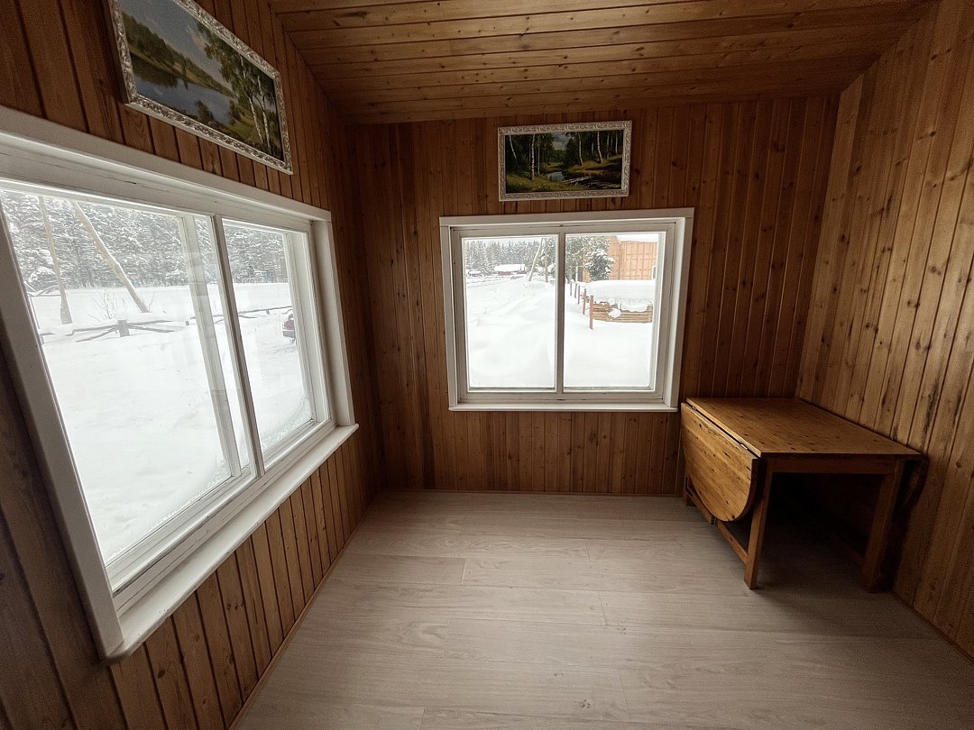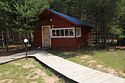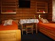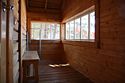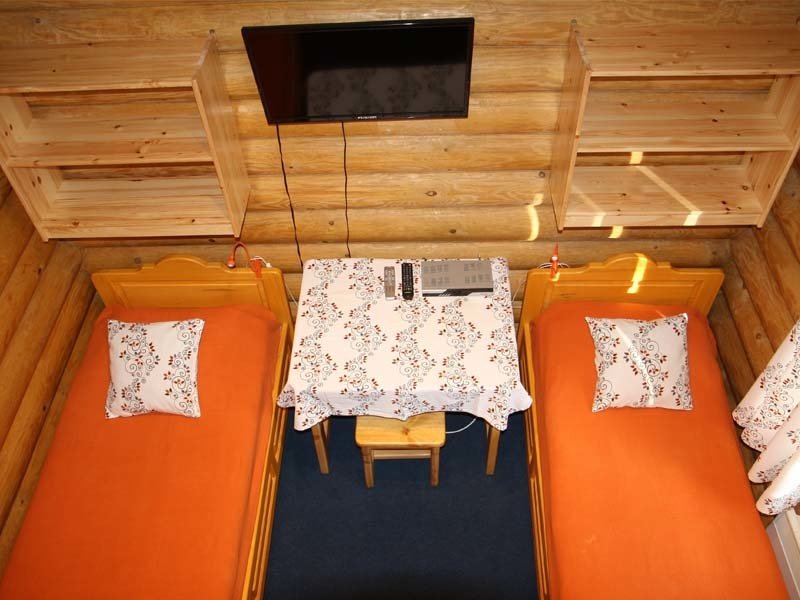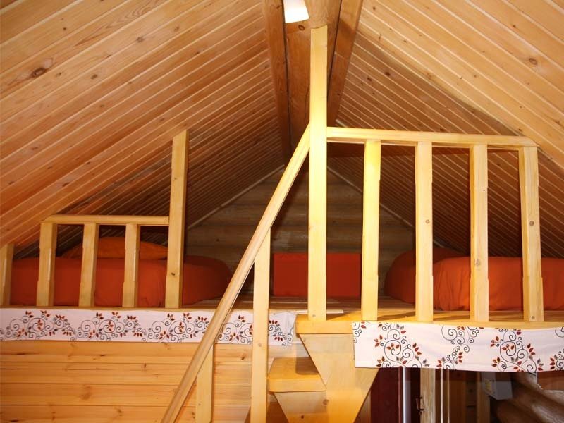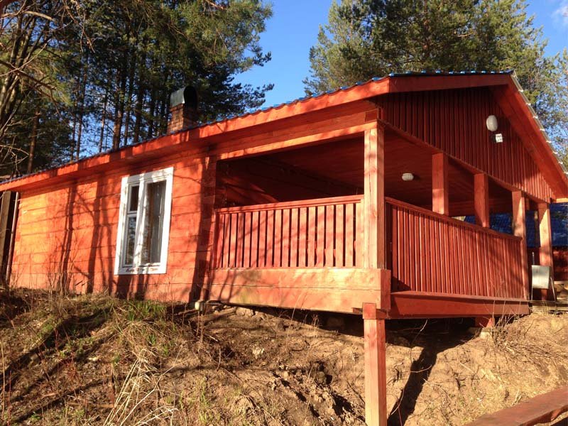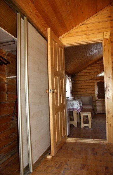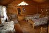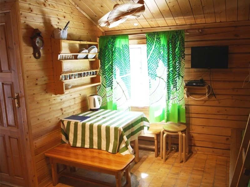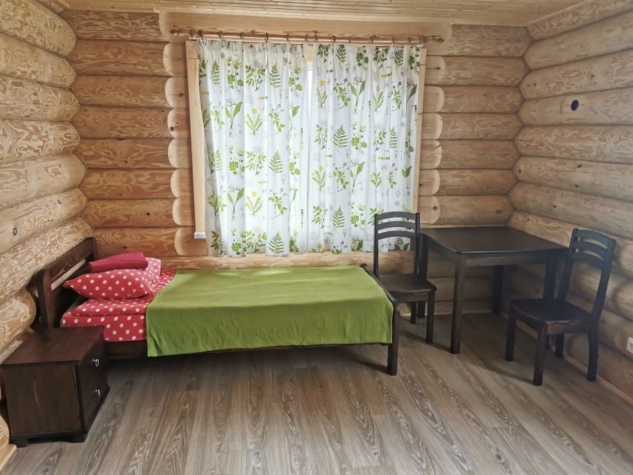 Одноэтажный коттедж на четыре человека. Состоит из одной комнаты для проживания, туалета/душевой, холодной веранды для хранения спортивного инвентаря. Кровати двухъярусные, врубленные в стену. Мини-кухня с чайником, микроволновой печью и холодильником.