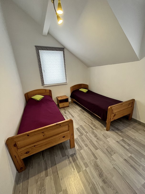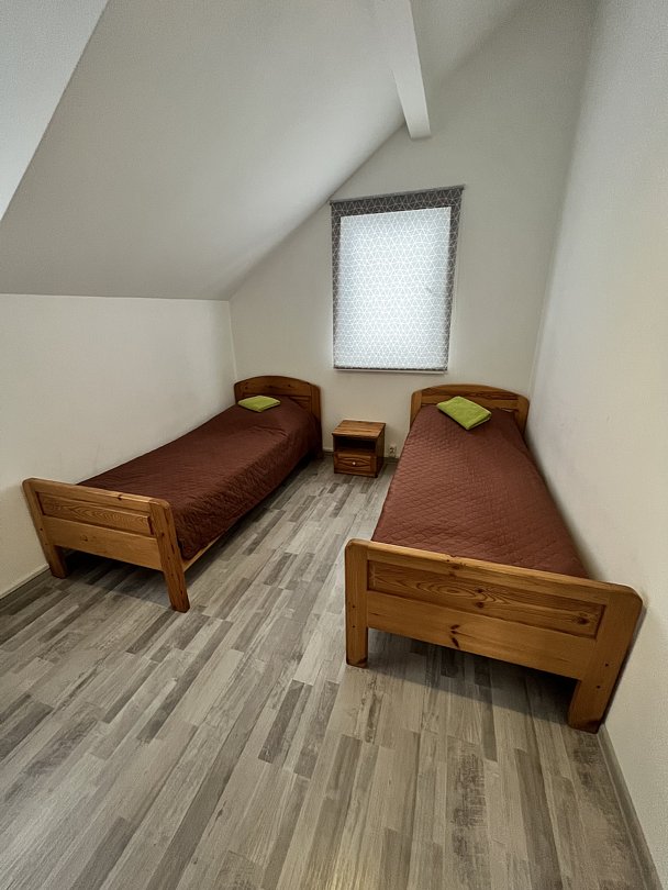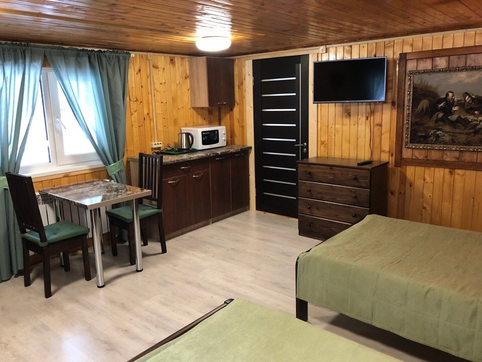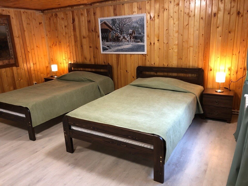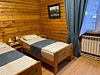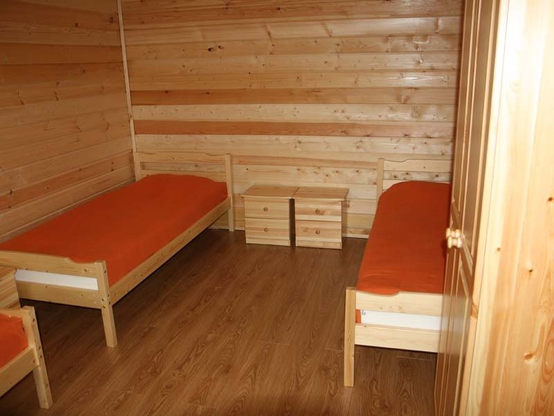 Двухместный коттедж, расположенный в сосновом парке недалеко от горки. Состоит из одной комнаты и туалета с душевой кабиной. В коттедже предусмотрены две полутороспальные кровати, комод, два шкафа, а также микроволновая печь, чайник и холодильник.