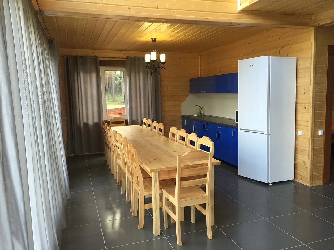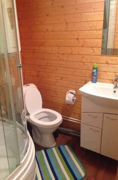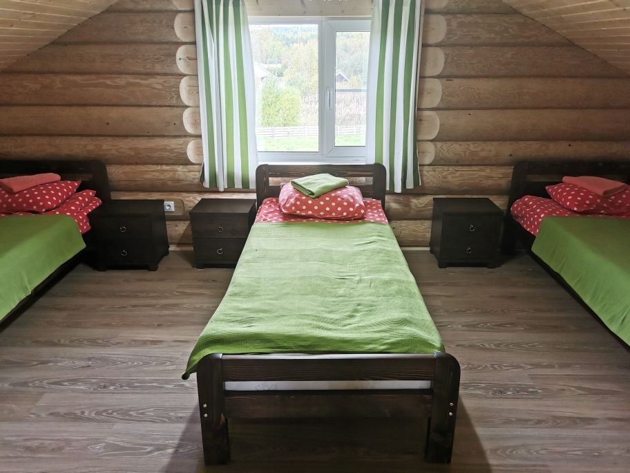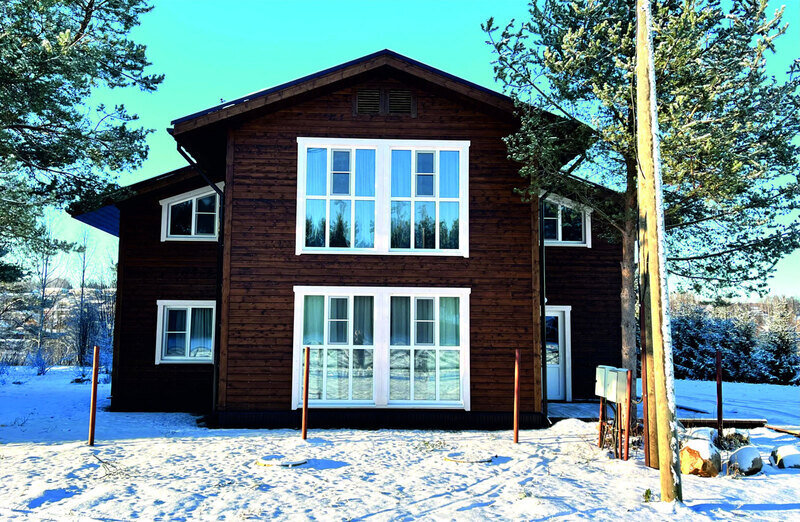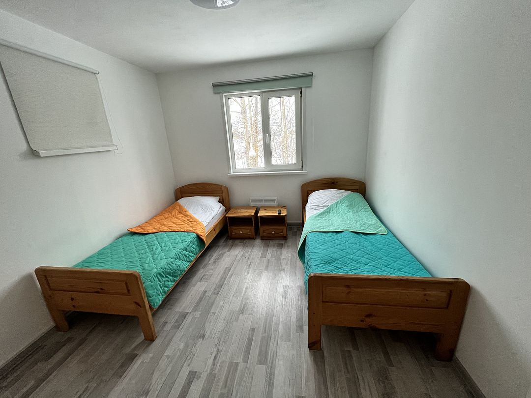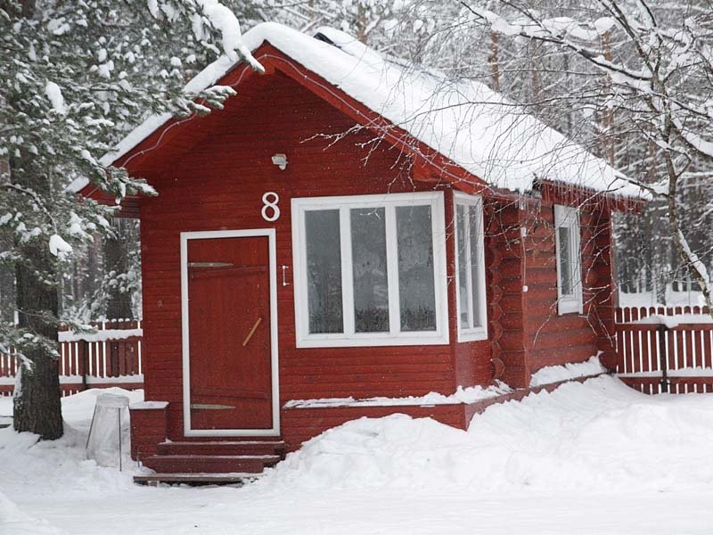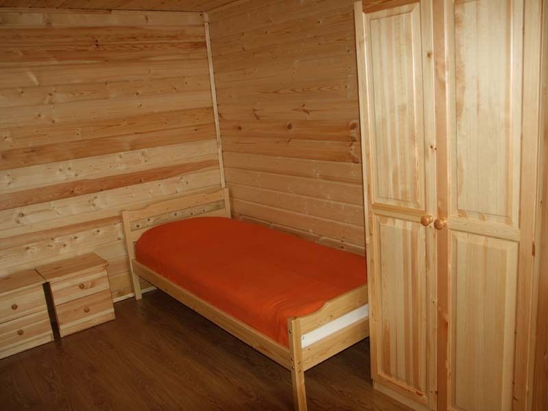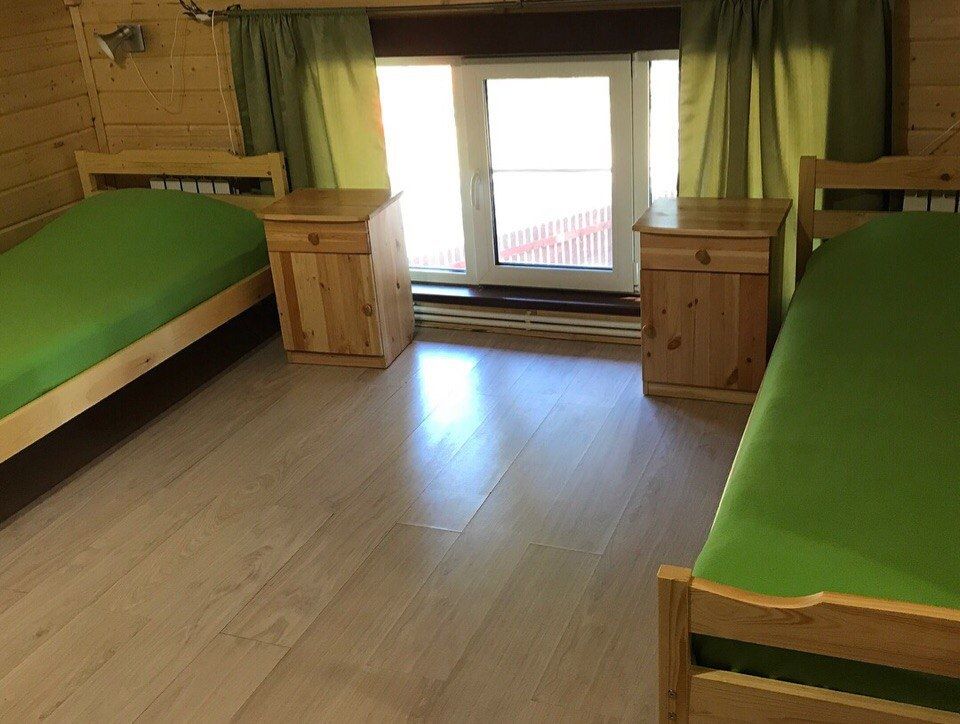 Двухэтажный коттедж на шесть человек. Состоит из трех спален (по две односпальные кровати в каждой), кухни, туалета/душевой, прихожей, холодной прихожей для хранения спортивного инвентаря.