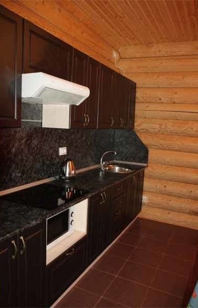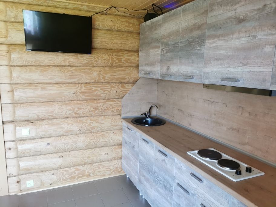 Мини-кухня оборудована столиком и стульями, что обеспечивает комфортные условия для отдыха.