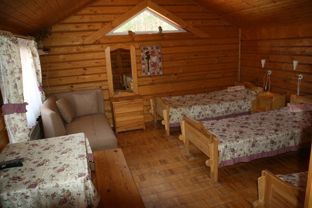 Спортивно-туристический комплекс предлагает отдых в уютных и теплых коттеджах ручной рубки на берегу реки, вместимостью от двух до шестнадцати человек. Также доступны три русских бани на дровах для расслабления.