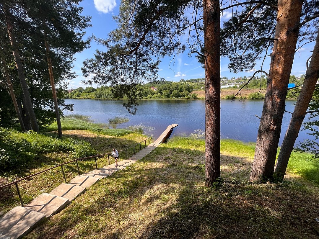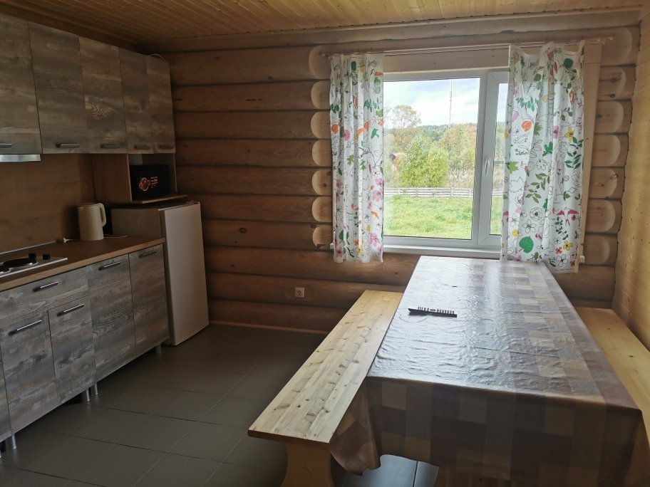 Коттедж расположен в двести метрах от кафе, в пятидесяти метрах от реки Устья, прямо на лыжном стадионе.