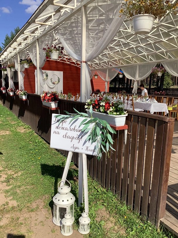 Спортивно-туристический комплекс «Малиновка» предлагает романтичную регистрацию брака на свежем воздухе, в живописном бору у реки Устья. Арка, украшенная цветами, придает событию особую атмосферу, а музыка и изысканный фуршет создают гармоничное и неторопливое оформление церемонии.