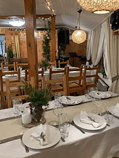 Гастрономический опыт будет не менее впечатляющим — повара устроят изысканный банкет, запоминающийся своим вкусом и эстетикой, и предложат детское меню для маленьких гостей. Перед основным торжеством гости насладятся фуршетом на свежем воздухе, а молодоженов ждет счастливый финал — романтическая ночь в украшенном коттедже в подарок от комплекса.