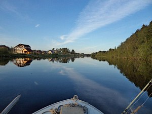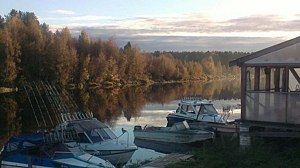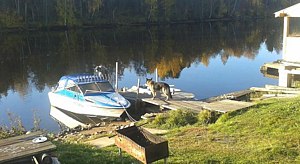 Коттедж из калиброванного бревна стоит в 15 метрах от воды (р. Тулокса). Рядом баня, уличная беседка, причал для лодок.