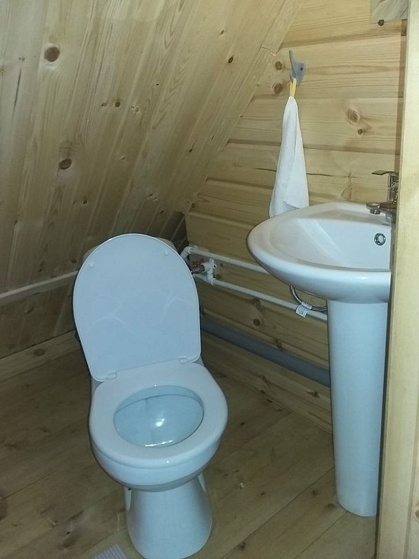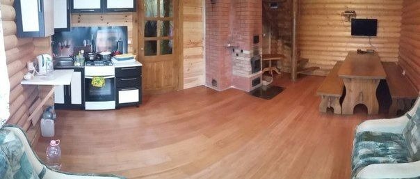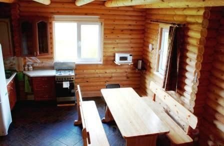 На первом этаже находится гостиная-кухня с камином и телевизором, спальня, туалет, душевая кабина. На втором этаже три спальни и санузел. Отопление — печь дровяная и электрообогреватели. Дом снабжён всем необходимым для длительного проживания (кухонная посуда, постельное бельё, холодильник, газовая плита, телевизор, сантехника). Полы с подогревом.