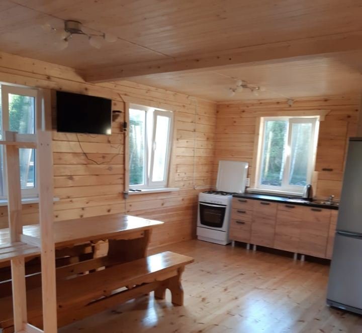 Отопление в доме обеспечивается печью-камином и электрообогревателями, расположенными по всему помещению. Коттедж укомплектован всем необходимым для долгого проживания: кухонная посуда, постельное белье, холодильник, четырехконфорочная газовая плита, микроволновая печь, телевизор и современная сантехника.
