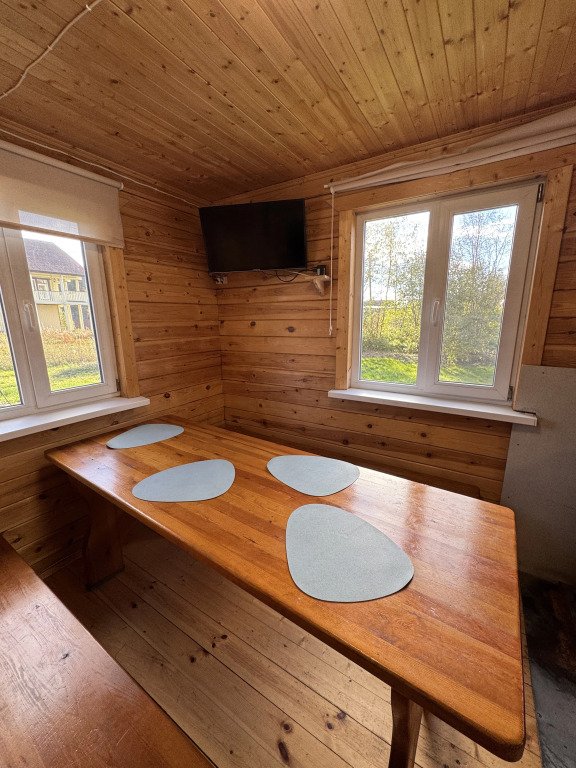 Отопление: печь-камин и электро-обогрев по всему дому. Дом снабжён всем необходимым для длительного проживания (кухонная посуда, постельное бельё, холодильник, 4хкомфорочная газовая плита, микроволновая печь телевизор, сантехника).