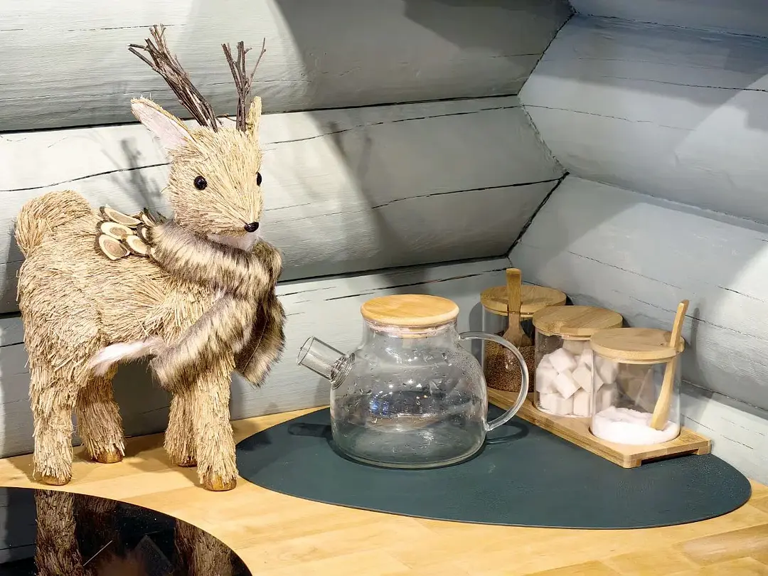 При постройке дома использовались только безопасные природные материалы: камень, дерево, натуральные лаковые пропитки и краски. Миссия — предложить качественный отдых в деревянном доме, удивляя деталями и сохраняя традиции: дерево, треск камина, коллекция винила, искры костра, берег тихой реки, домашние яйца и молоко для завтрака на природе.