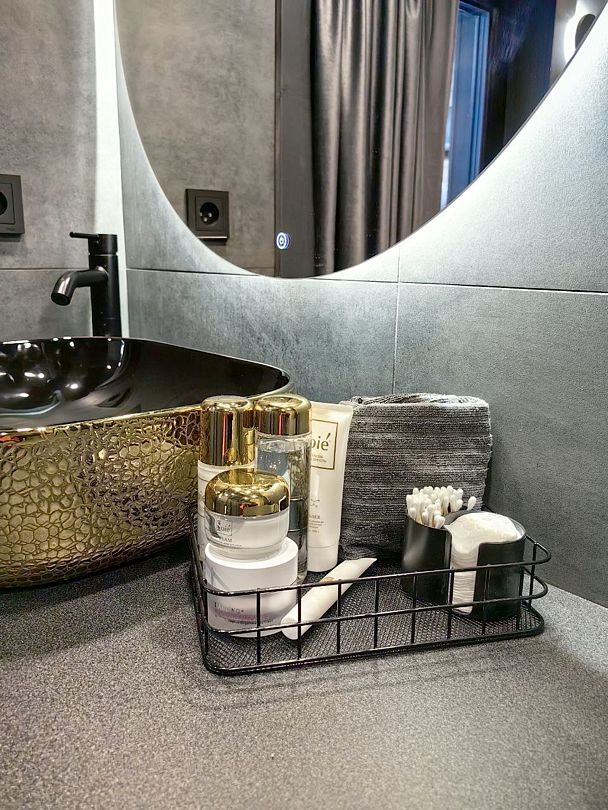 Для гостей — большая двуспальная кровать, двухместный диван, возможность организовать дополнительное место для детей, премиальное постельное белье из вареного хлопка Araya Home, свежие полотенца и все необходимое для ухода за телом, кондиционер.