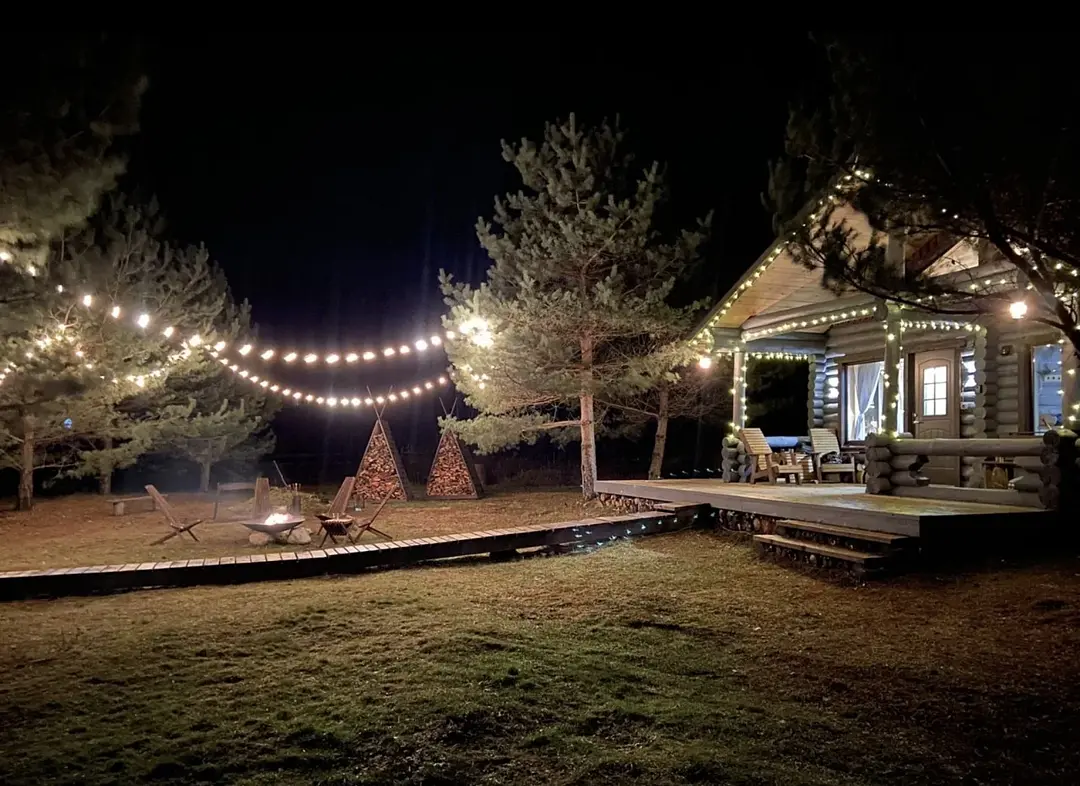 Гости могут насладиться просторными песчаными берегами и прозрачными водами реки, а вокруг простирается густой хвойный лес, полный грибов и ягод. Вечера у камина или на костровой зоне с мангалом обещают тепло и уют, позволяя слушать треск дров и любоваться звездным небом. Свежий воздух и живописные пейзажи заряжают энергией и вдохновением.