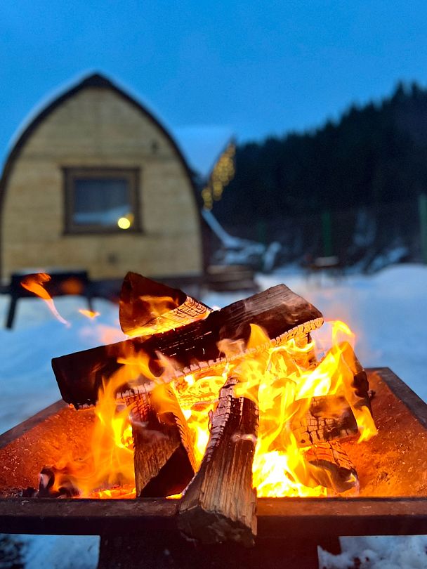 Уютные домики оснащены всем необходимым для комфортного проживания. На территории есть баня и мангалы прямо рядом с глэмпингами.