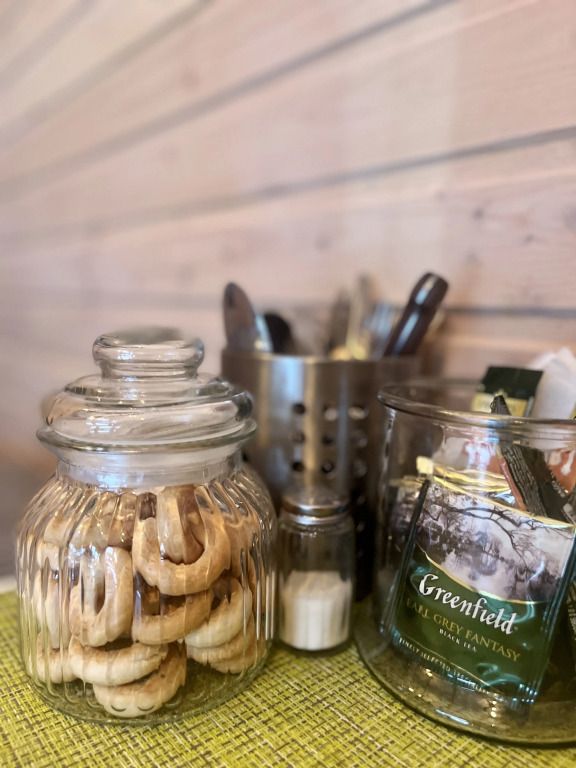 Здесь позаботились и о необходимых мелочах: чай, кофе, одноразовые тапочки, шампуни и гели для душа, фен.