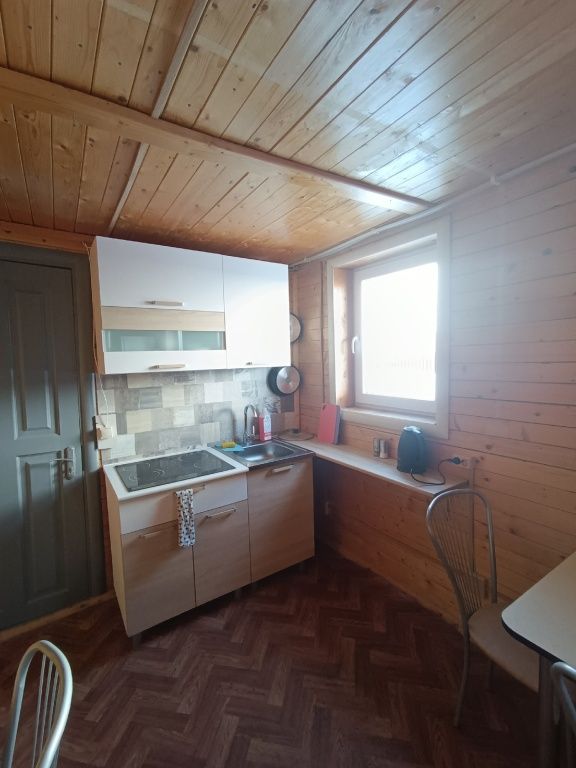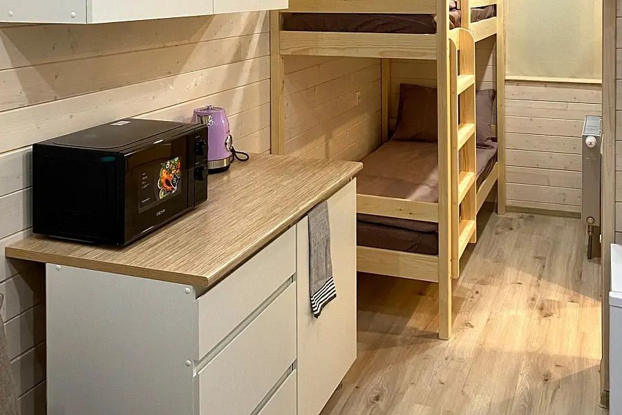 Кухня с варочной поверхностью и всем необходимым оборудованием для готовки в эко-домах «Географ», «Шаман», «Соланыч».
