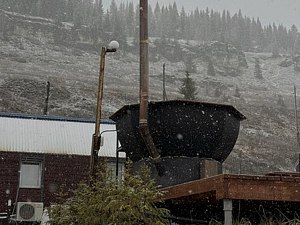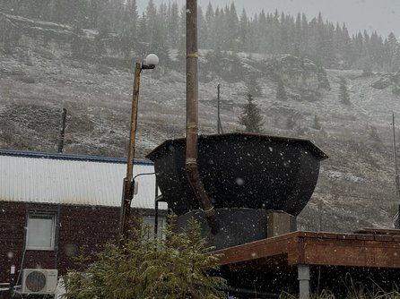Наш чан хорош в любое время года - зимой в нем тепло, даже горячо, а летом нежарко и даже прохладно. А какой из него открывается вид на Усьвинские скалы!