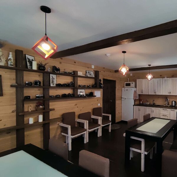 В гостевом доме «Йети» вас ждут две просторные и уютные зоны для отдыха с кухней, оформленные в уникальном авторском стиле. Одна из них предназначена для корпусов «Хижина Йети», «Аквариум» и «Ленин дом», а вторая располагается в индивидуальной гостиной коттеджа «Йети глаза напротив». Кухонные зоны оборудованы всей необходимой техникой и посудой, что позволит вам легко разогреть приготовленное или создать настоящий кулинарный шедевр.