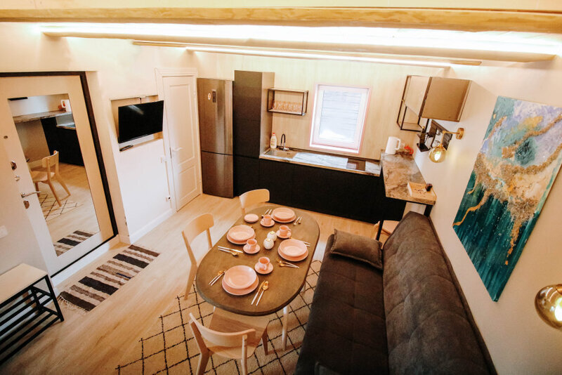 В числе удобств номеров с паркетным полом гостиный уголок с телевизором с плоским экраном, полностью оборудованная мини-кухня с обеденной зоной и собственная ванная комната.