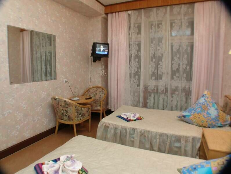 В номере есть односпальные кровати, прикроватные тумбочки, телевизор, санузел.