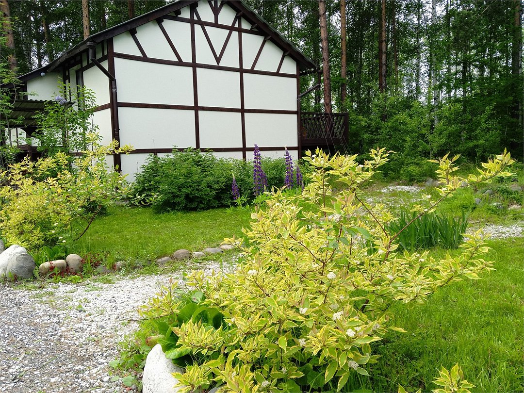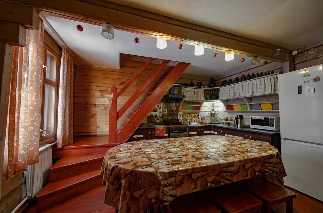 Для комфортного отдыха семьи или небольшой компании «Альпийский домик» — подходящий вариант: просторная гостиная со столовой и кухонной зоной, выход на большую открытую террасу под кронами сосен и берез, три небольшие уютные спальни.