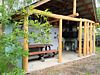 Место для приготовления блюд на углях для взрослых и игровая площадка для детей.