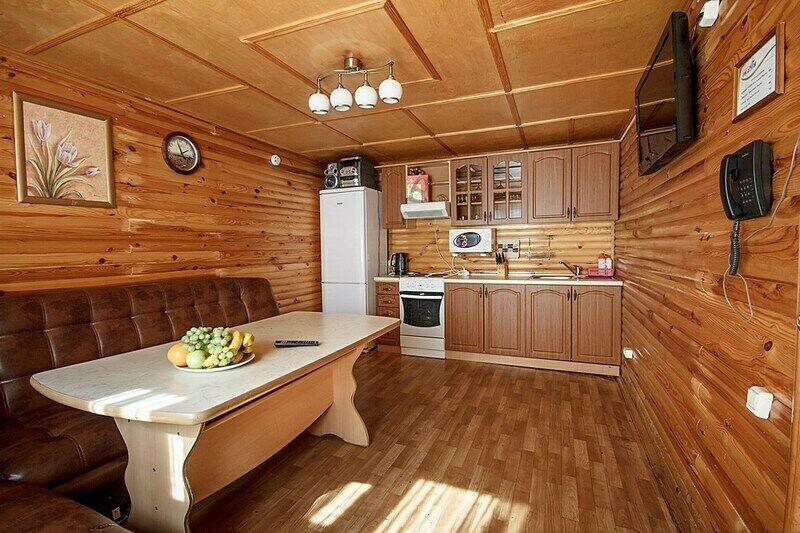 Все дома выполнены из экологического материала - дерева. Обновленный интерьер создает атмосферу уюта и тепла. Установлена функциональная мебель и современные телевизоры. Ванная комната включает в себя стандартное сантехническое оборудование. Из окон открывается живописный вид на окружающую местность.