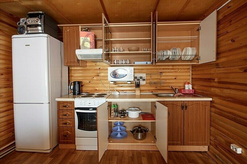 Приготовить любимые блюда постояльцы могут на оснащенной кухне, где есть вся необходимая бытовая техника и обеденная зона. Кроме того, на улице можно приготовить блюда на гриле. А заодно отдохнуть в беседках.