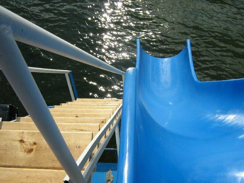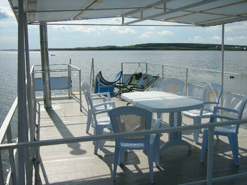 Верхняя палуба представляет собой зону отдыха и прекрасным видом на озеро, откуда можно сразу нырнуть в воду! А зимой — в ледяную прорубь!