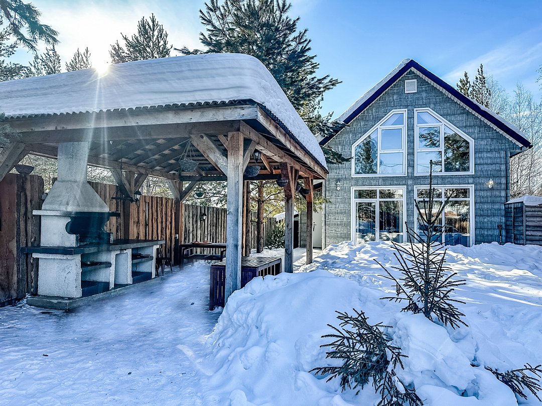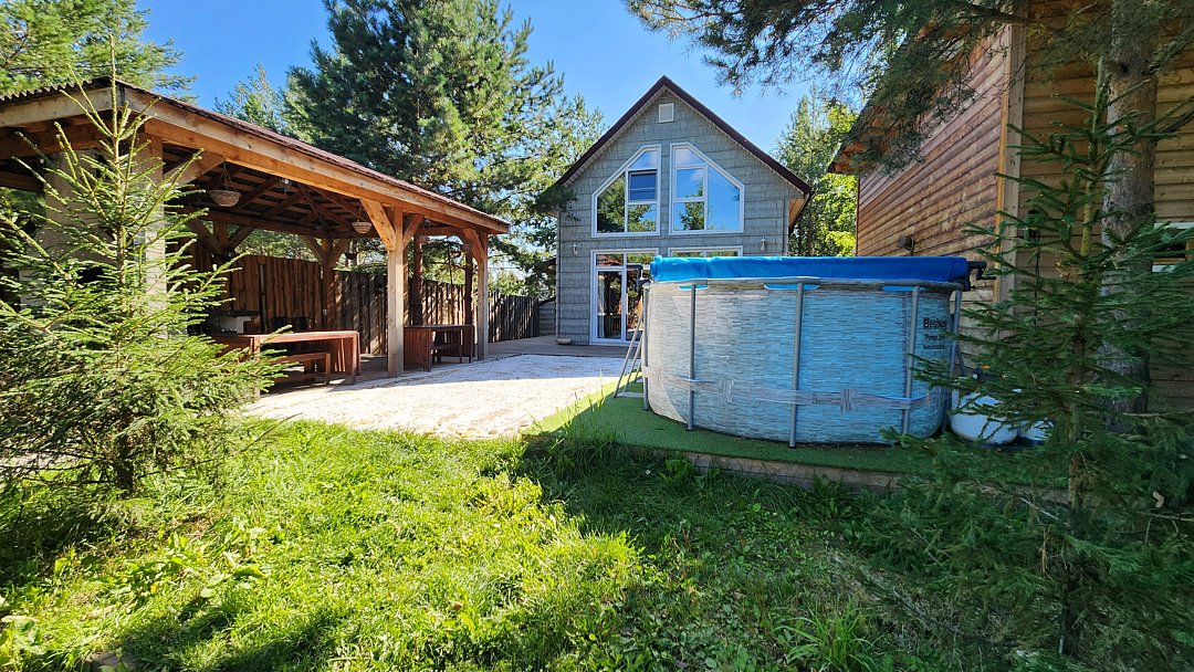 Летом гости могут насладиться освежающим плаванием в каркасном бассейне, расположенном на участке. Отдельное удовольствие ждет гостей в уютной деревянной бане с дровяной печью, соседствующей с «Дачей Дизайнера». Это место станет отличным дополнением к отдыху, позволяя наслаждаться паром и расслабляющим атмосфером после активного дня.