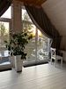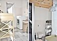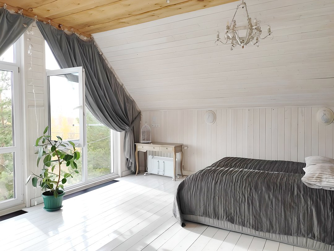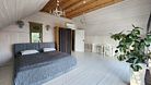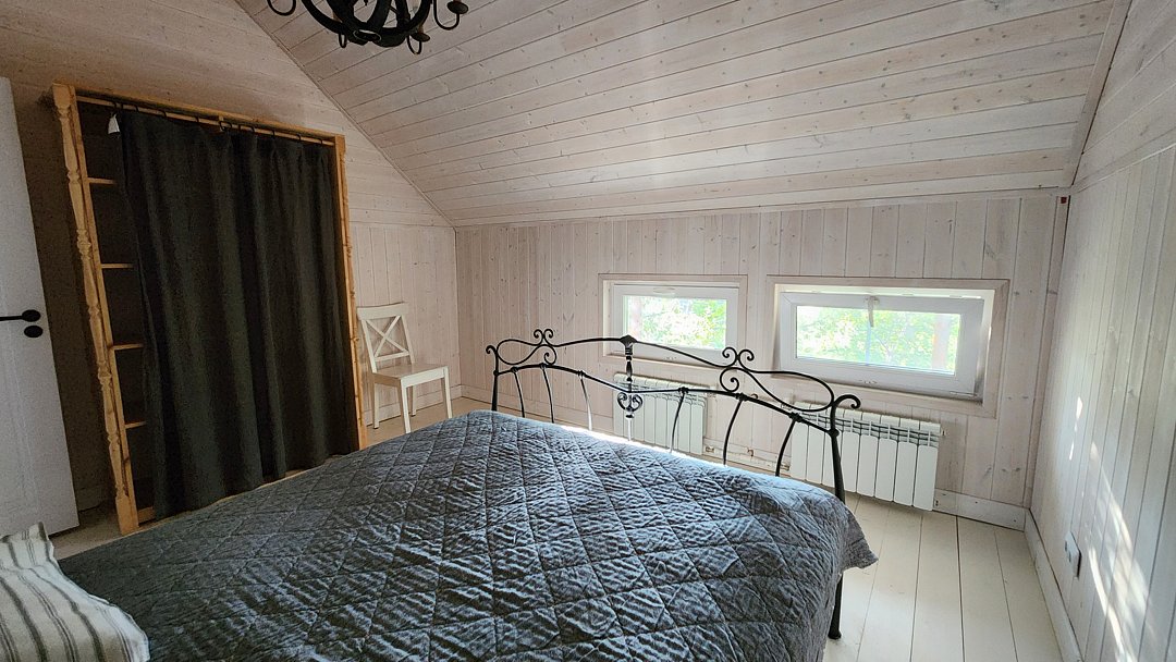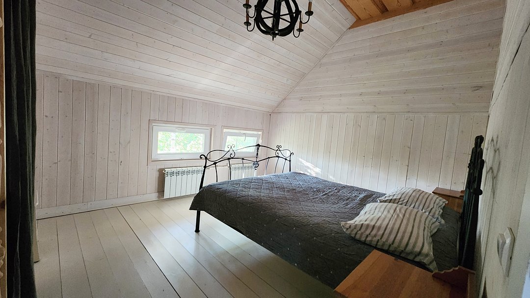 Второй этаж: две спальни. В большой спальне находится двуспальная кровать, а в маленькой спальне — одна двуспальная кровать. Стандартно дом рассчитан на восемь человек, для них все входит в оплату.