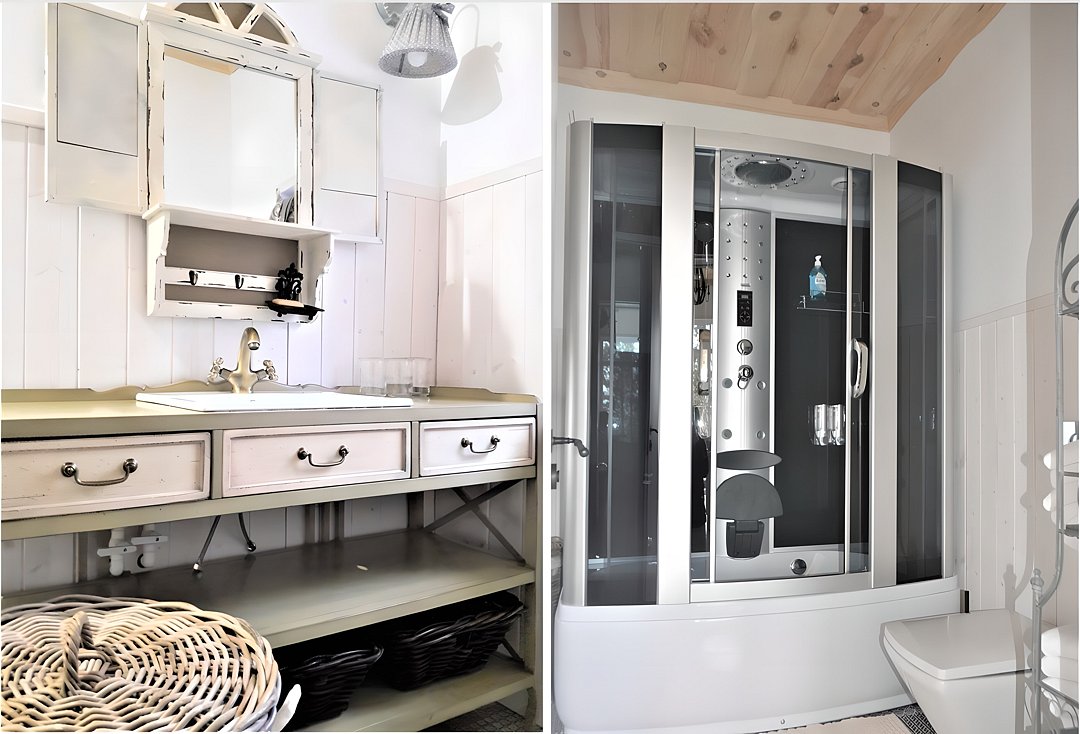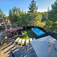 В жаркие дни гости могут освежиться в каркасном бассейне, расположенном прямо на участке, или насладиться традиционным ритуалом парения в деревянной бане с дровяной печью. Здесь, в атмосфере тепла и уюта, можно восстановить силы и найти умиротворение после насыщенного дня.