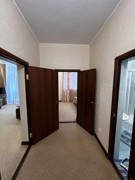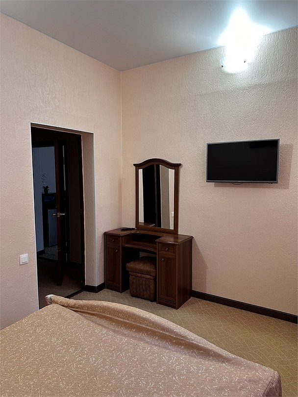 Санузел и душ в номере. Холодильник, чайник, , телевизор в каждой комнате, микроволновая печь, фен, балкон, кондиционер, столовая посуда, сушилка для белья, утюг. халаты.Услуги и удобства
