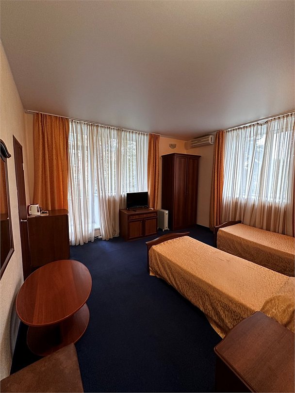 Wi-Fi, холодильник, кондиционер, фен, утюг, обогреватель, душевая кабина, санузел, водонагреватель, халаты, пляжные полотенца, тапочки, лоджия, две односпальные кровати, гладильная доска, шкаф для одежды, журнальный столик, зеркало, пуфики, набор посуды, сейф, чайник, ковровое покрытие, отопление, вид на сад, кулер на этаже, вид во двор, стаканы, сушилка для белья, диван-кровать, телевизор с плоским экраном, москитная сетка, номер для некурящих, онлайн-регистрация до заезда, фумигатор, уборка номера, набор для приготовления чая и кофе, услуги прачечной (платно), вешалки-плечики, шапочка для душа, частный двор, мыло, прачечная (за дополнительную плату), онлайн-регистрация, без питомцевВ номере