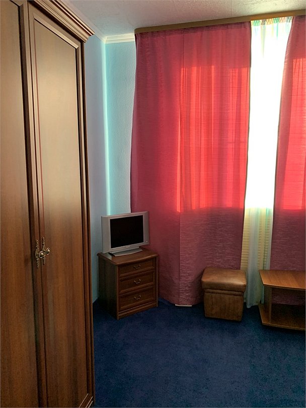 Wi-Fi, кондиционер, фен, утюг, обогреватель, водонагреватель, тапочки, балкон с красивым видом, двуспальная кровать, гладильная доска, шкаф для одежды, журнальный столик, пуфики, чайный набор, чайник, ковровое покрытие, общая ванная комната, внешняя ванная комната, телевизор с плоским экраном, мини-холодильник, кресло-кровать, фумигатор, уборка номера, услуги прачечной (платно), вешалки-плечики, мыло, зеркало в полный рост, без питомцевВ номере