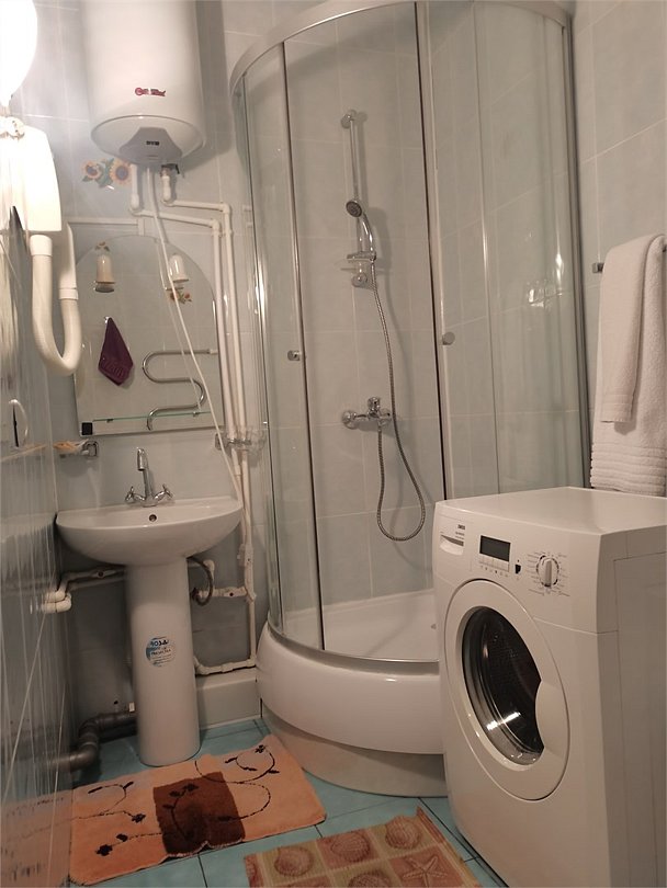 Санузел и душ в коридоре на 1 человека, балкон. Холодильник, чайник, чайный набор, фен, вентилятор, столовая посуда, сушилка для белья, утюг.Услуги и удобства