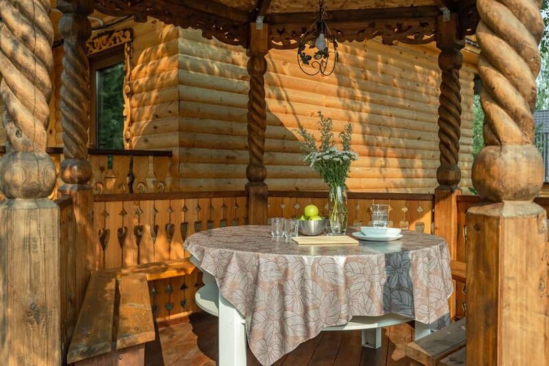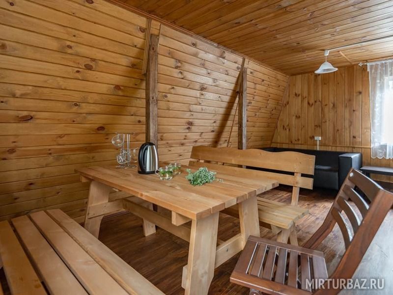 На кухне комплект посуды на 8 персон, чайник, плитка, микроволновая печь, вместительный холодильник. В гостиной большой стол, два двухместных дивана, телевизор. Рядом с каждым домом есть мангал, благодаря которому вы сможете приготовить вкусный ужин, и насладиться им на свежем воздухе, сидя в своей беседке. Для каждого дома предусмотрена парковка на два автомобиля. Территория Хутора закрытая и в ночное время освещается. Чувствуйте себя в безопасности.