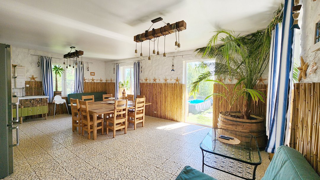 Дом предназначен для спокойного и размеренного отдыха. Здесь не приветствуются шумные мероприятия, вечеринки и громкая музыка. Также на территории действует режим тишины в период с 22:00 до 08:00, который способствует созданию спокойной обстановки для отдыха и сна.