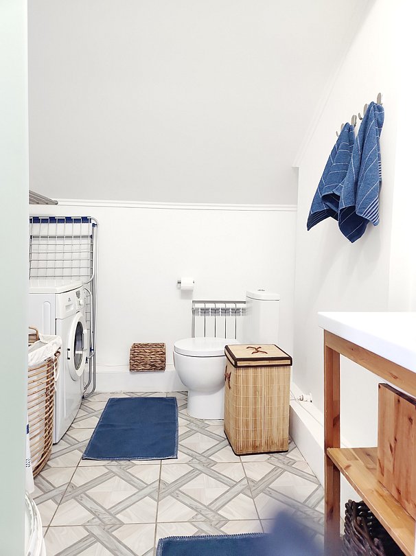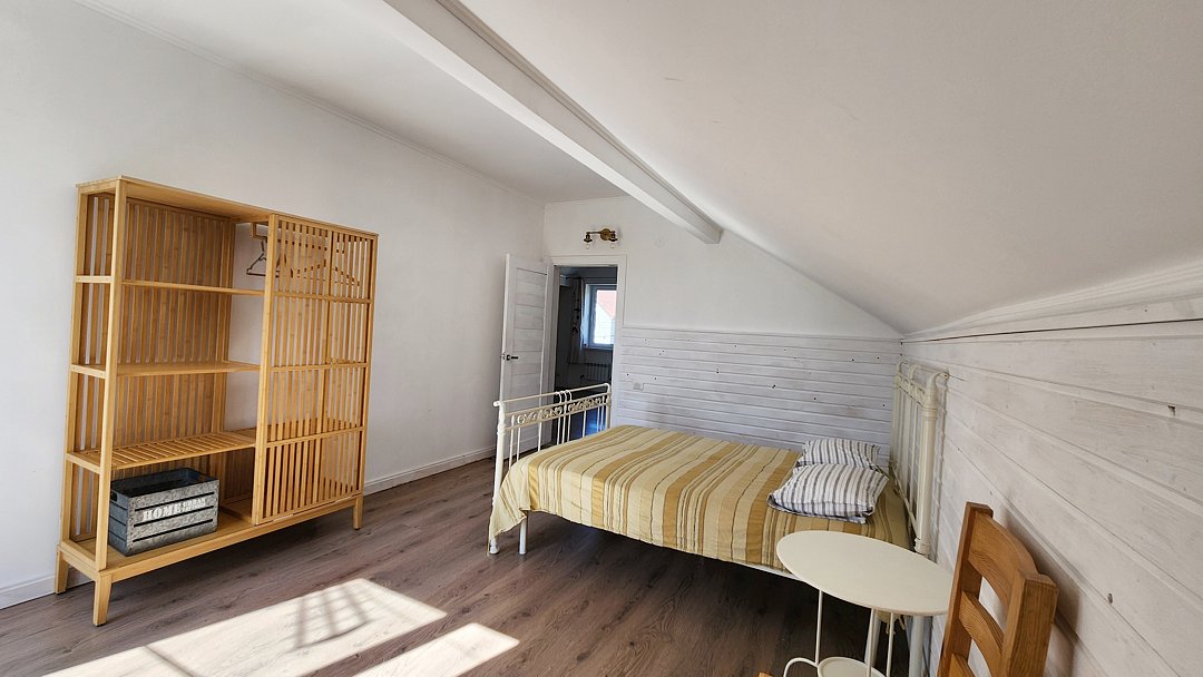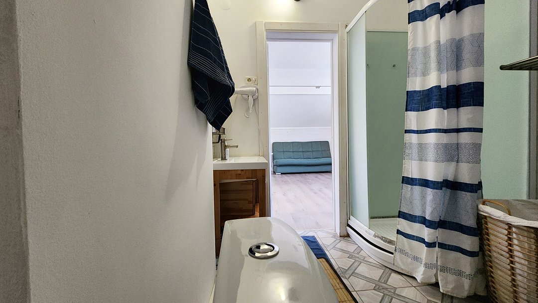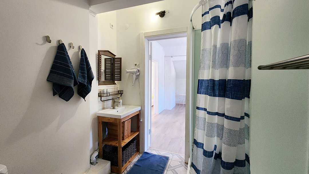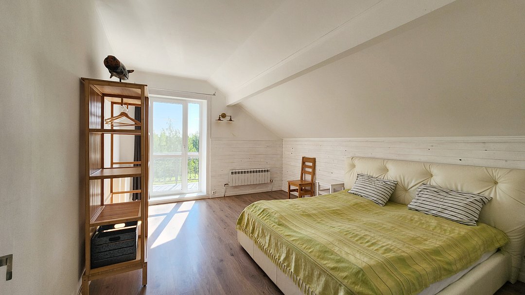 Второй этаж: холл с двумя двуспальными диванами, две спальни, в каждой по одной двуспальной кровати, санузел с душевой кабиной и стиральной машиной.