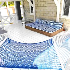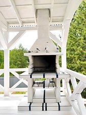 Читать полностьюВ белоснежной беседке расположена барбекю-печь, которая приглашает гостей насладиться готовкой на свежем воздухе. Здесь можно отведать вкусные блюда за столом или расслабиться в гамаке и на шезлонгах.