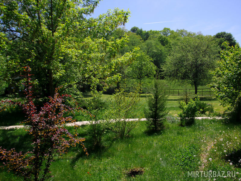 К вашим услугам комфортабельные номера в рубленном доме, большая столовая, великолепная баня, чистый воздух, отсутствие комаров и высота 600 метров над уровнем моря. С веранды рубленного дома вам откроется красивейший панорамный вид на кавказский хребет, на горы Ачешбоки, Шапка, Tхач, сундуки, Чертовы ворота.