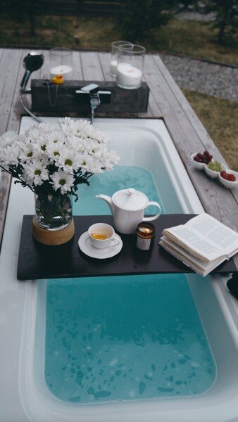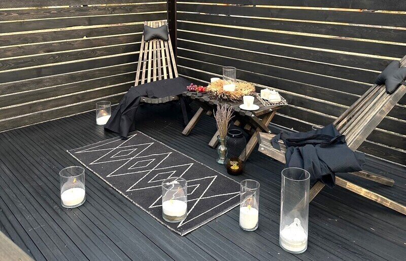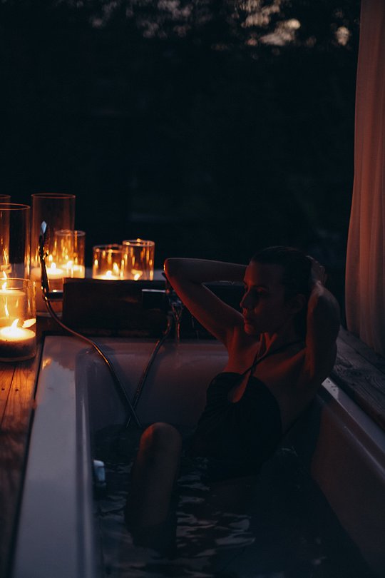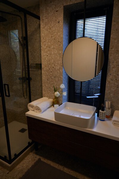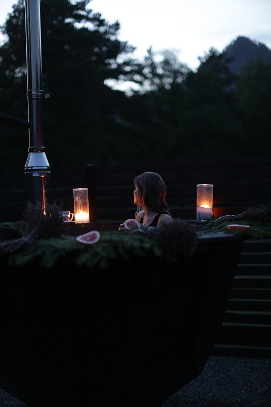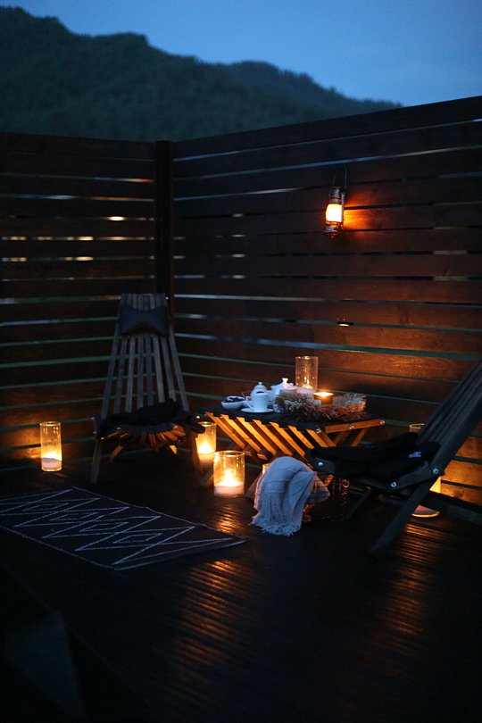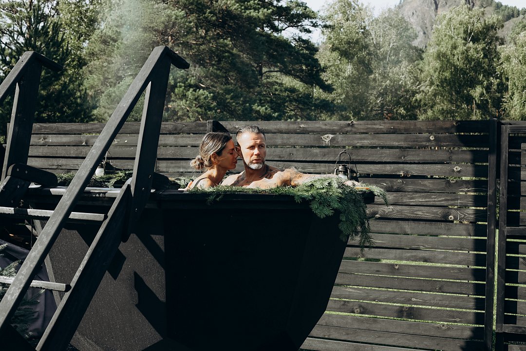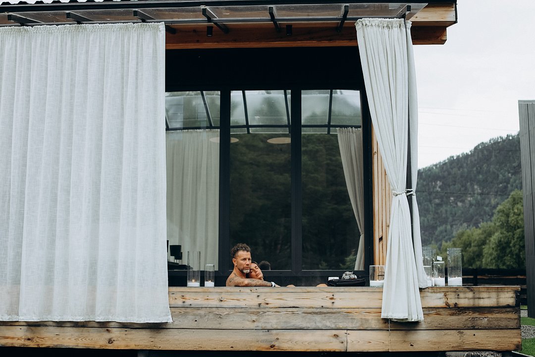 Дополнительно оснащён встроенной в террасу ванной с волшебным видом на горы (используется только в тёплое время года).