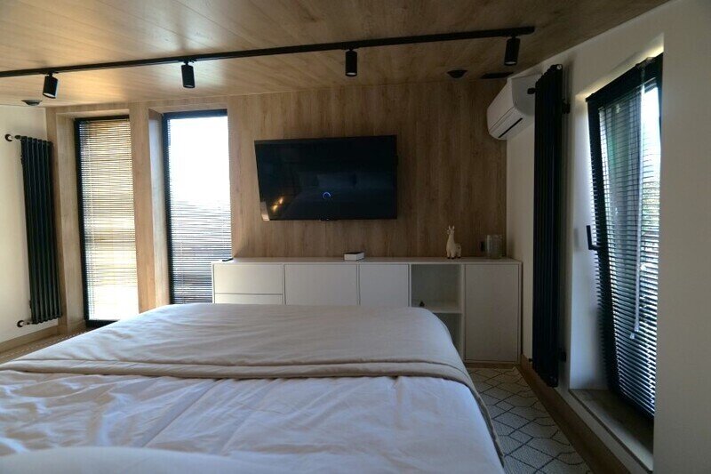 Второй этаж оснащён двуспальной кроватью с ортопедическим матрасом для более комфортного, спокойного сна.