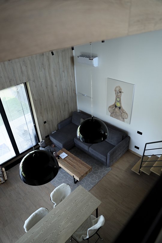 Раздельная климатическая система на двух этажах, система приточно-вытяжного воздухообмена, периметр первого этажа (включая прихожую и ванную) полностью обогревает водяной тёплый пол.