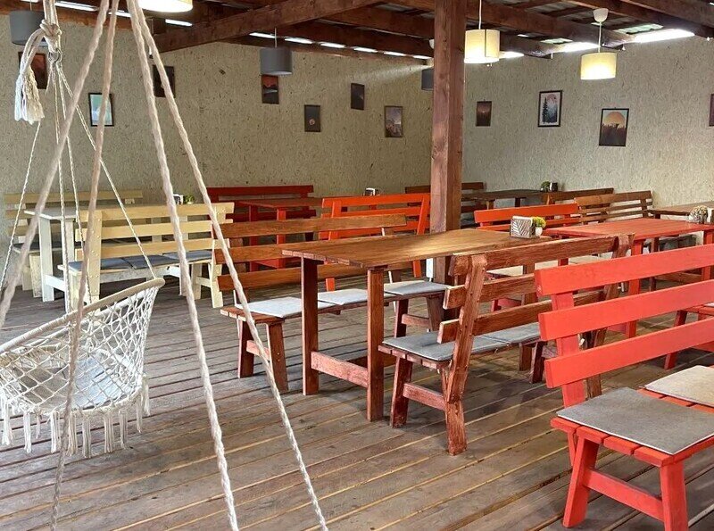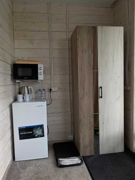 Разогреть еду можно при помощи имеющихся электроприборов. А если захочется пожарить мясо или овощи, можно сделать это в мангальной зоне. Кроме этого, на территории открыто летнее кафе, где предлагаются вкусные блюда местной кухни.