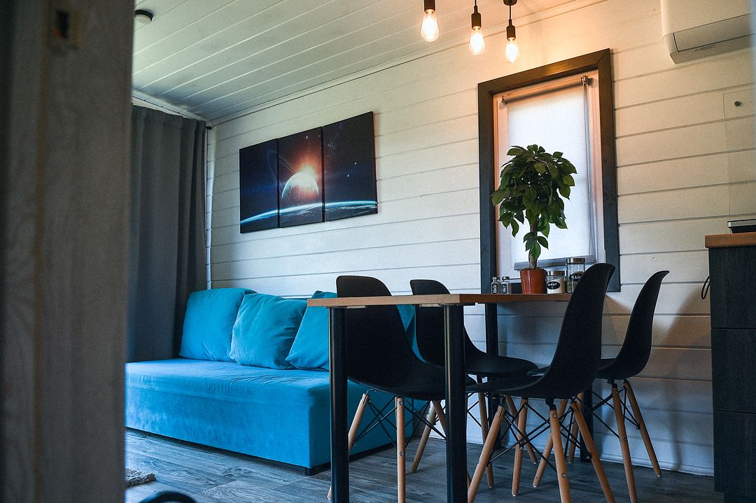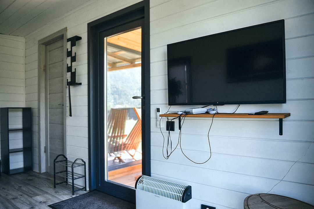 В домиках есть телевизор с функцией smart-TV.
