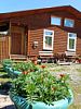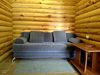 В домике расположена двуспальная и двухъярусная кровати, санузел с душевой кабиной, холодильник, микроволновая печь и набор посуды. Под навесом расположена электрическая плита.