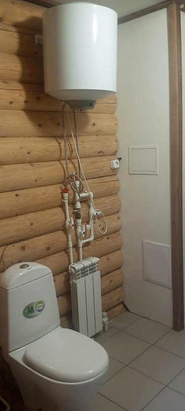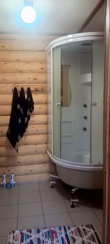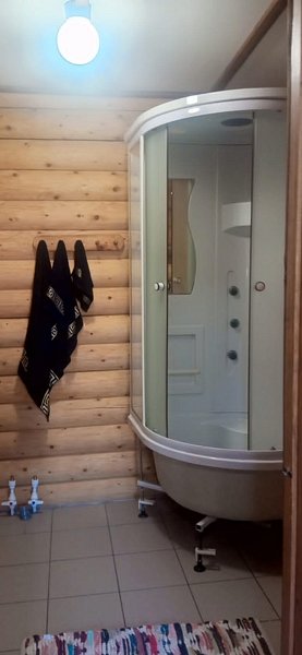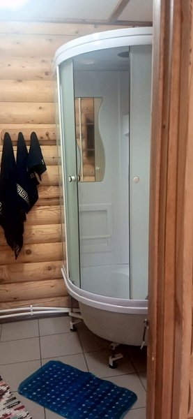 - Санузел с душевой кабиной, горячей водой, раковиной и туалетом.
